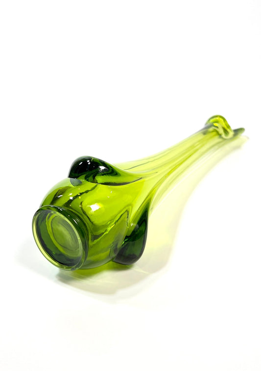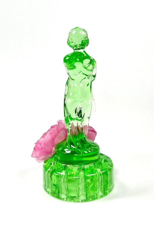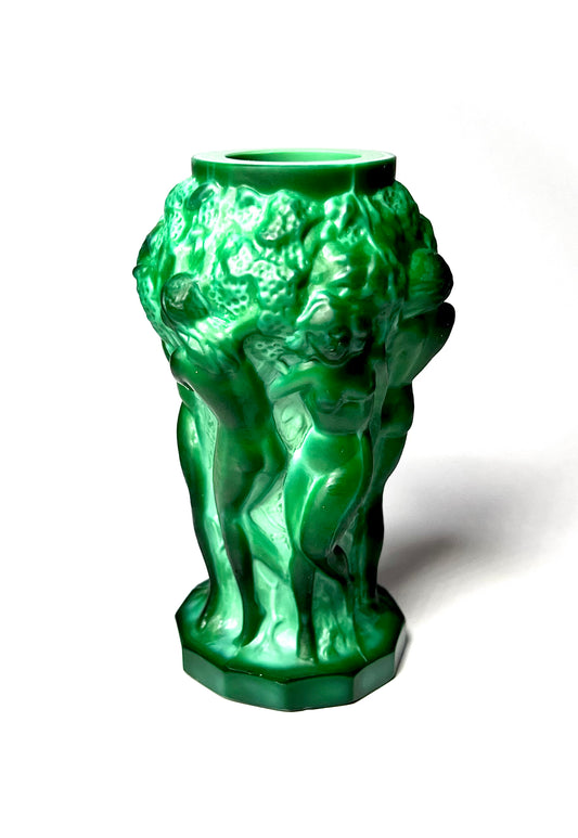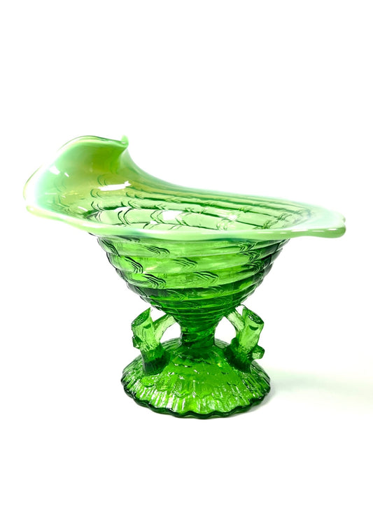 Cambridge Green Uranium Glass Draped Nude Woman Flower Frog