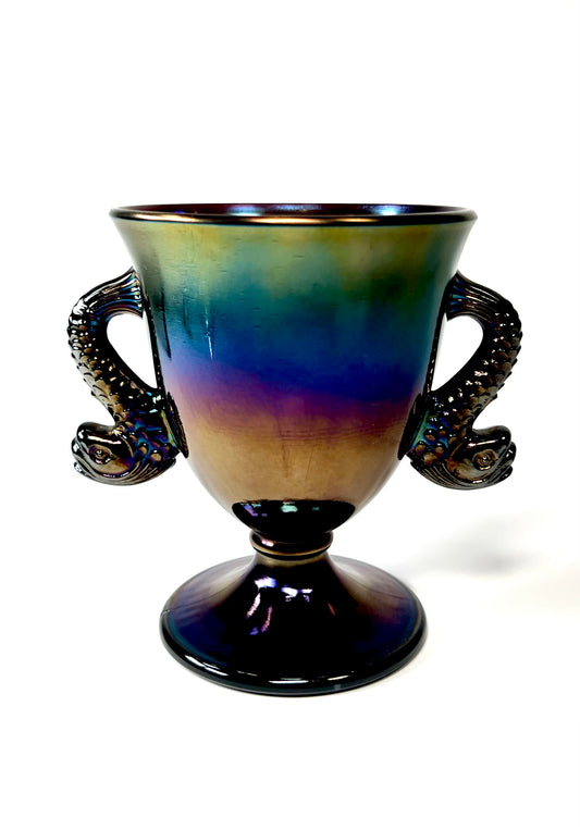 Fenton Iridescent Amethyst Carnival Glass Dolphin Fish Candy Dish