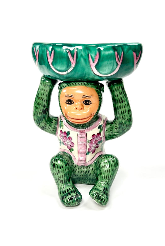 Green and Pink Flower Monkey Chinoiserie Bowl
