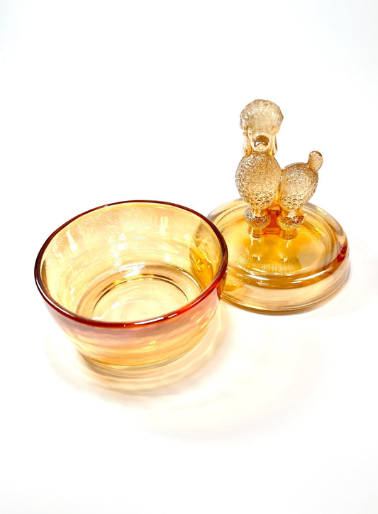 Jeannette Iridescent Marigold Poodle Glass Trinket Jar