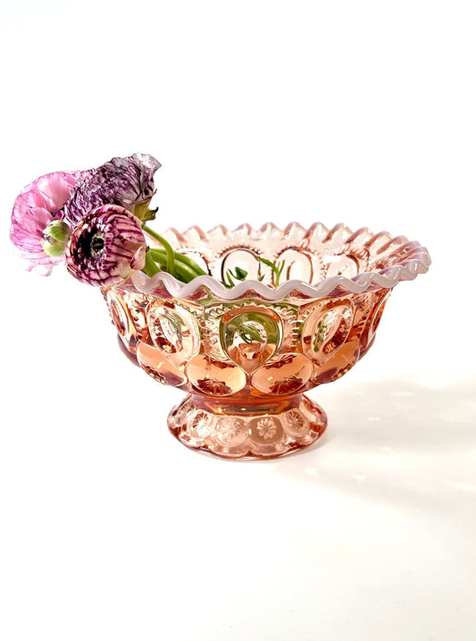 L. E. Smith Moon and Star Pink Opalescent Ruffle Bowl