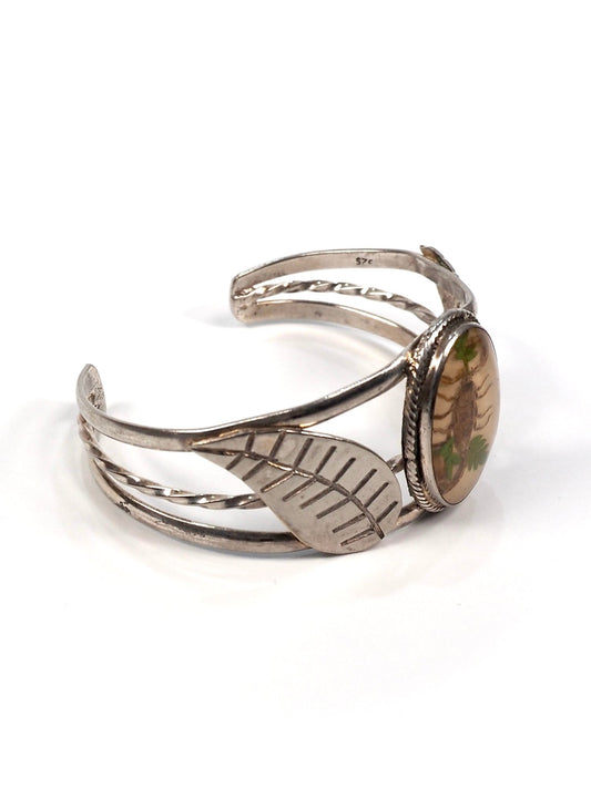 Vintage Sterling Silver Scorpion Medallion Leaf Bracelet