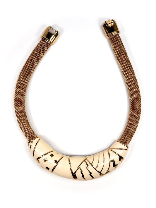 Monet Gold Cream Enamel Modernist Abstract Bib Necklace