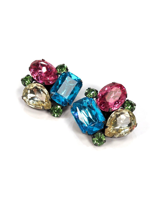 Thelma Deutsch Multi Color Glass Rhinestone Earrings