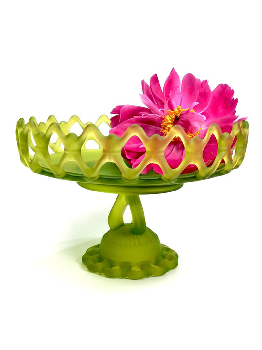 Westmoreland Green Soft Mist Satin Glass Laced Edge Pedestal Bowl