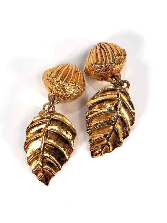 Antigona Paris Gold Acorn Leaf Dangle Earrings