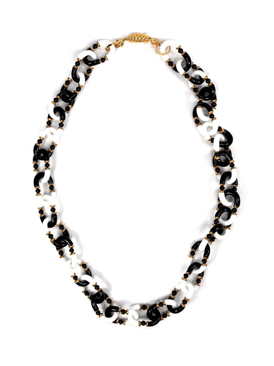 Chanel Archimede Seguso Black and White Glass Chain Link Necklace