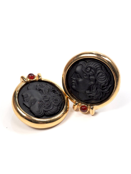 Schiaparelli Watermelon Iridescent Glass Jeweled Round Earrings