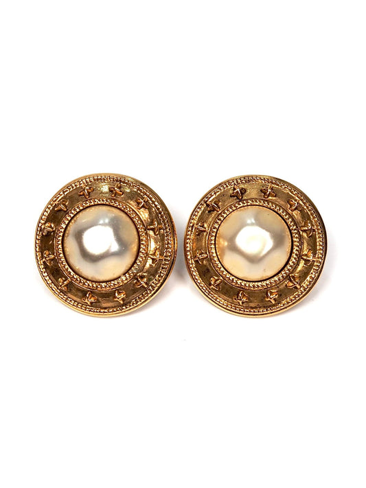 Chanel Faux Pearl Round Gold Star Earrings