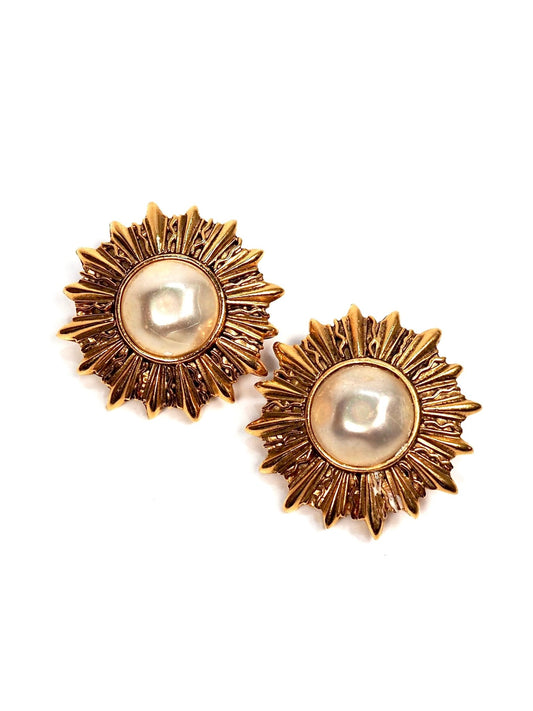 Chanel Gold and Faux Pearl Sunburst Earrings