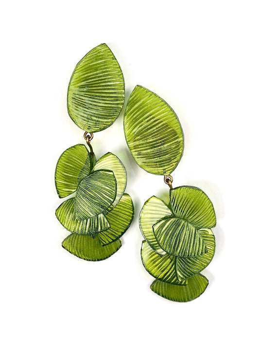 Fabrice Paris Green Jungle Leaf Resin Earrings
