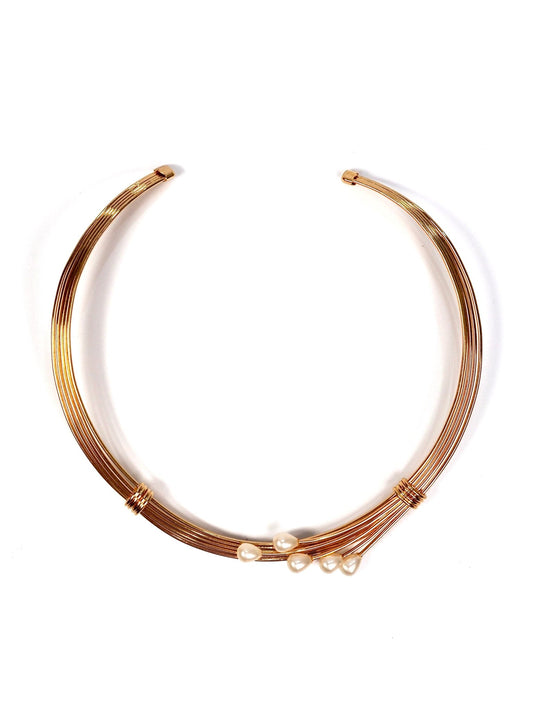 Gold and Faux Pearl Wire Collar Necklace