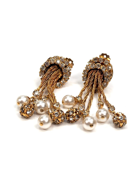 Gold Rhinestone Pearl Drop Swing Earrings
