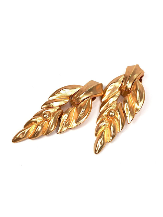 Matte Gold Abstract Leaf Drop Earrings