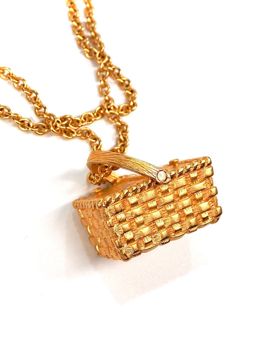 Matte Gold Picnic Basket Long Charm Necklace