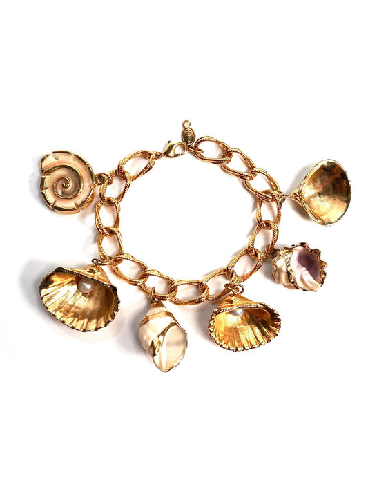 Napier Gold Pearl Seashell Charm Bracelet