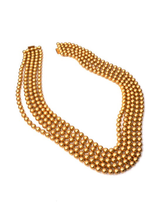Brushed Gold Multi Strand Metal Beaded Necklace