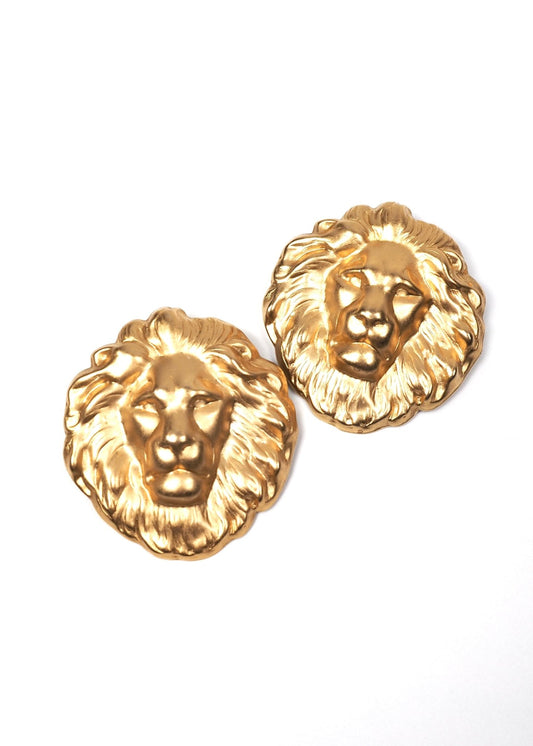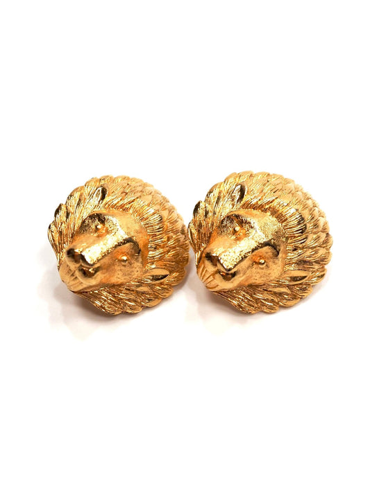 Oversized Satin Gold Lion Head Earrings