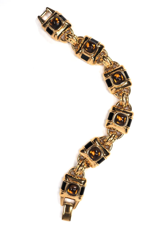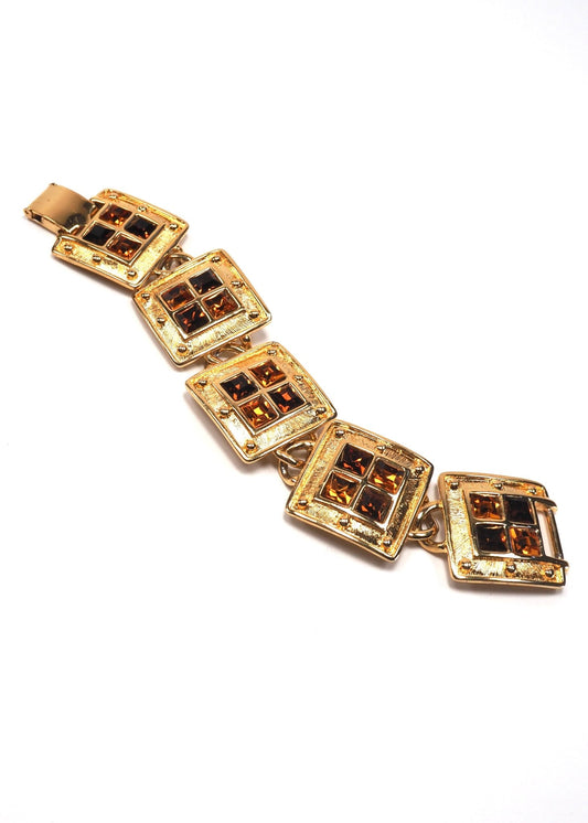 Napier Gold Amber Jeweled Galleria Square Link Bracelet
