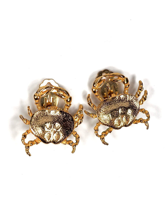 Textured Gold Zodiac Cancer Crab Earrings