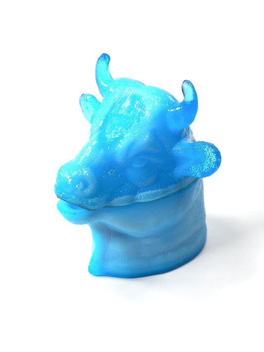 Atterbury Blue Opalescent Bull's Head Mustard Jar