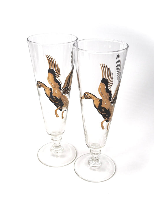Mid Century Gold Duck Pilsner Drinking Glasses