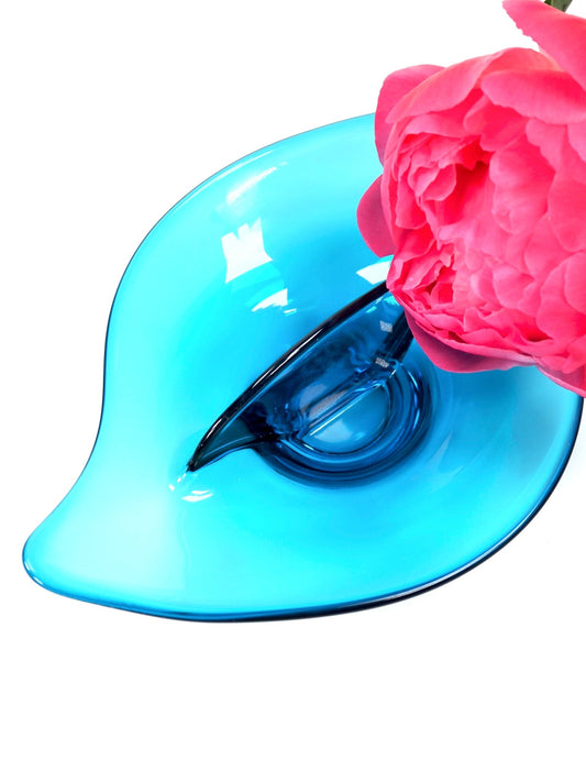 L. E. Smith Turquoise Blue Moon and Star Footed Bowl